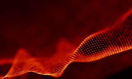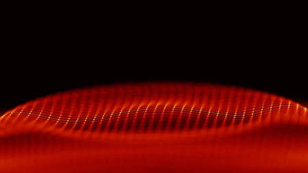Golden red particles form line and surface grid. microcosm or space. 3d rendering science fiction background of glowing particles with depth of field and bokeh. Curved lines 19