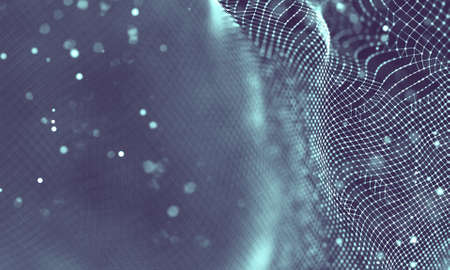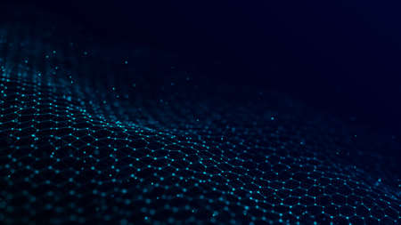 Wave 3d. Wave of particles. Abstract Blue Geometric Background. Big data visualization. Data technology abstract futuristic illustration.