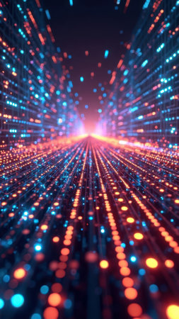 Captivating digital abstract background featuring a mesmerizing display of vibrant glowing particles and trails creating a futuristic and ethereal atmosphere The dynamic