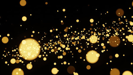 Captivating golden and bronze bokeh lights create an ethereal atmosphere against black background