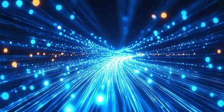 Abstract background with the movement of luminous particles. Digital technology connection concept.