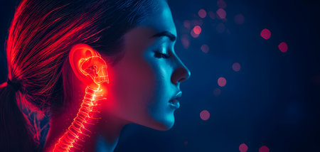 Visualizing Pain: Highlighting Ear and Neck Discomfort in an Intense Neon Red and Blue Palette