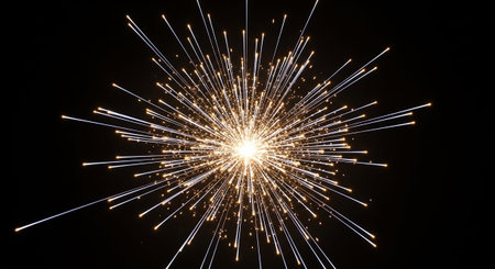 This image showcases a brilliant explosion of radiant light with streaking rays and particles, set against a dark backdrop, evoking a celestial or cosmic phenomenon with a striking visual impact. AI generated image