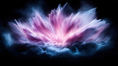 Abstract explosion of pink and blue light bursting from a dark cloud. Concept of cosmic energy, creativity, and imagination