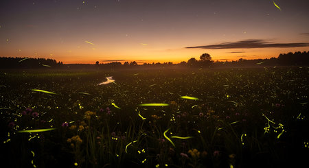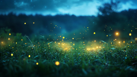 Landscape of Firefly flying in the field, Firefly at night, so many lights in the photo