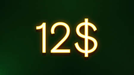 Neon number 12 and dollar sign on green background. Vector illustration.