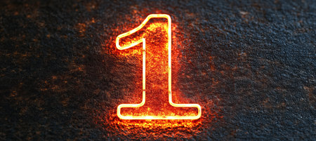 3d rendering. A glowing neon number two in vibrant colors of pink, blue, and orange, set against a dark background with blurry floor reflection