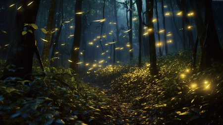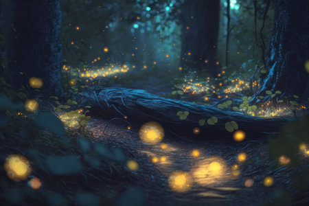 Magical forest path illuminated by glowing fireflies Creating using generative AI tools
