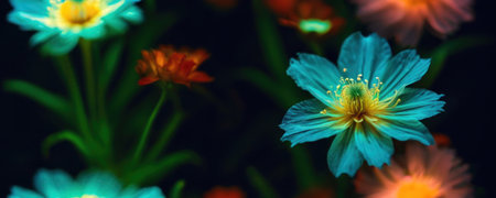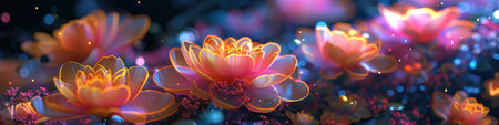 Generative AI art with Beautiful glowing flowers. Aurora Blooms. The Mesmerizing Glow of Flowers. Generative AI