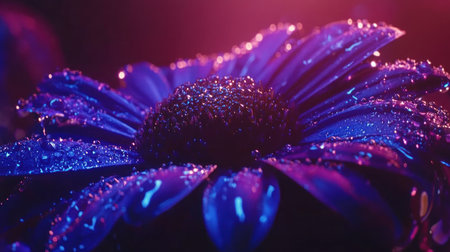 Beautiful macro photography of a blue daisy flower, with a purple background, sharp focus, studio lighting, and professional color grading. --chaos 30 --ar 16:9 --v 6.1 Job ID: 45721b30-bf1f-4a9d-a813-29286e362b6e