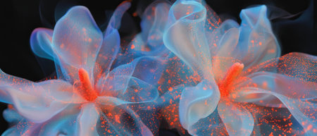 Delicate translucent flowers with soft hues of pink and blue, creating a soothing and ethereal atmosphere.