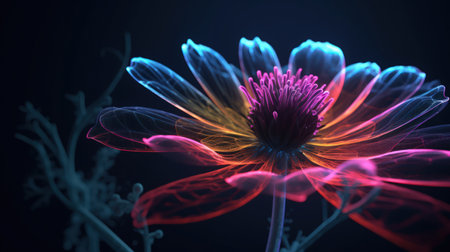 Illustration, neon aesthetics, neo-noir, X-ray image flower. Generative AI.