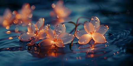 Luminous Frangipani Flowers Floating on Tranquil Waters at Dusk.