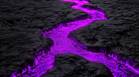 This abstract image showcases a mesmerizing flow of glowing purple water against a dark textured surface, creating a striking visual effect that captivates the viewer's imagination.