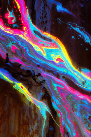 Viscous thick oil texture with industrial dark background showcasing vibrant patterns