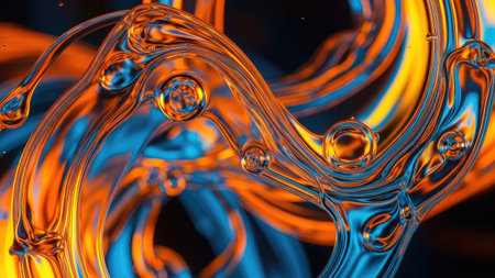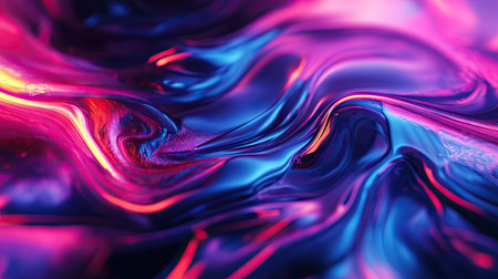 Abstract 3D fluid design with neon colors and liquid-like textures, creating a mesmerizing, futuristic visual perfect for tech and entertainment themes.