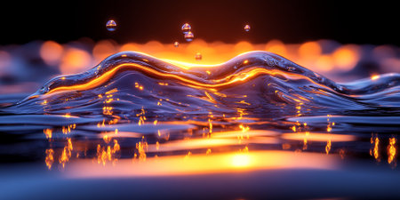 Water Wave Abstract Sunset Orange Blue Liquid Nature sea art glow drop dark fire light