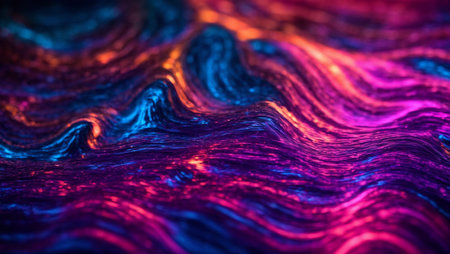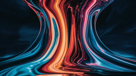 Vibrant neon light flowing abstract curve shape background. Colorful liquid surface digital artwork. Optical illusion illustration.