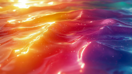 Abstract Rainbow Hues in Fluid Organic Forms with a Metallic Shine A vibrant and dynamic background featuring fluid rainbow-colored forms