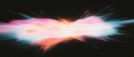 Dynamic light streaks create an abstract pattern illuminating darkness with vibrant colors