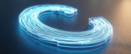 A sleek, illuminated letter C glows in a mesmerizing neon blue, creating a striking visual against a dark background. This captivating design embodies modernity and innovation, perfect for tech-related themes and branding.