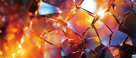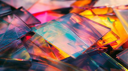 Stunning close-up of shattered glass displaying vibrant colors and reflections. The interplay of light creates a captivating and artistic texture, ideal for various design projects.