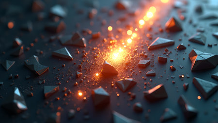 Stunning abstract image showcasing scattered glass fragments illuminated by light, creating a captivating visual spectacle filled with dynamic energy and beauty.