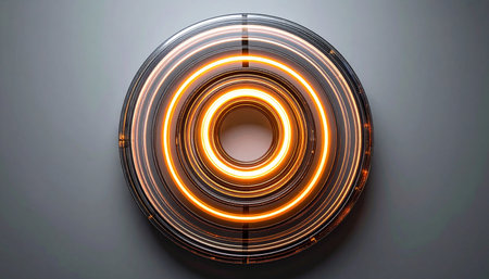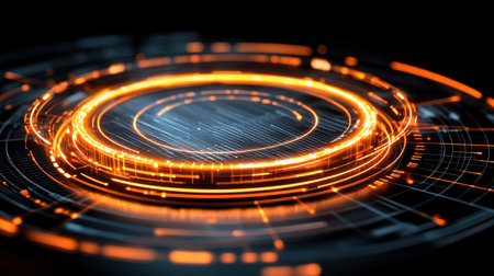 Eye-catching futuristic circular pattern featuring glowing orange light effects on a dark background, perfect for tech and design themes.