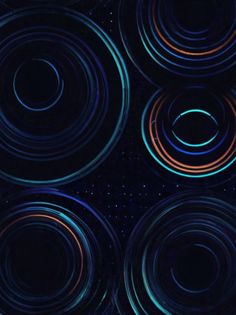 Abstract visualization dynamic neon circles in a dark futuristic art concept