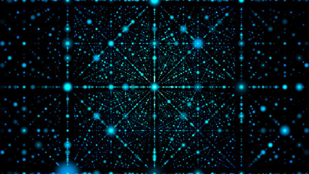 Digital cybernetic structure made of lattices, dots and abstract geometric shapes. Abstract background, screensaver