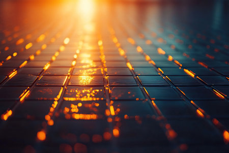 Elegant array of reflective squares with golden light accents
