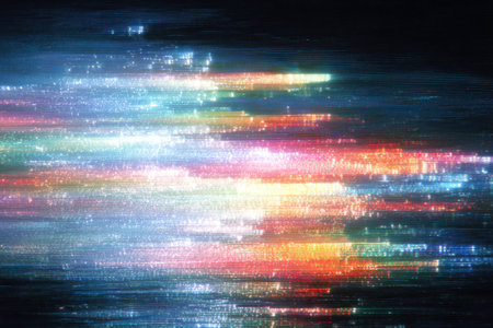 Distorted digital artifacts create vibrant fragments of color and light patterns
