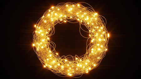 Counting Down to 2024: A Golden Holiday Background Illuminated by Glowing Lights