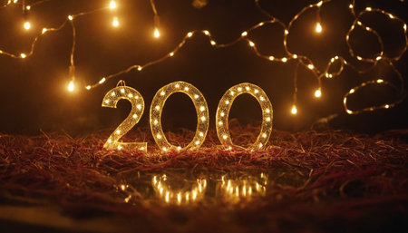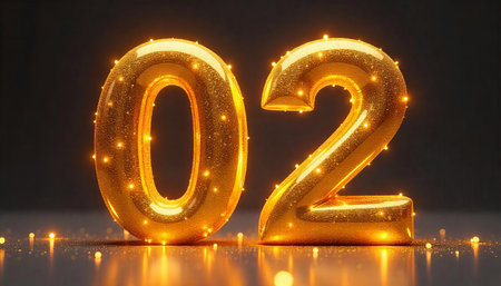 Sparkling numbers stand out on a festive backdrop, welcoming the new year with excitement.