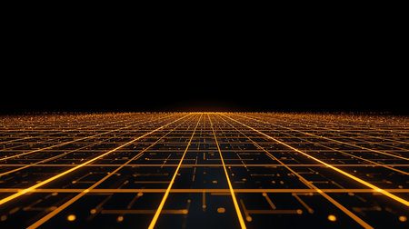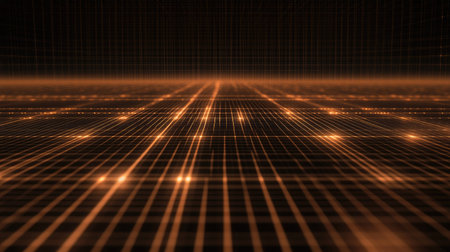 This stunning image features a glowing grid pattern with warm orange lights against a dark background, creating a captivating abstract design perfect for technology themes.