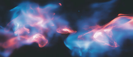 Magic mixing. Paint cloud. Defocused sparkling flows fluid pink blue liquid smoky vapor blob on abstract blurred art background.
