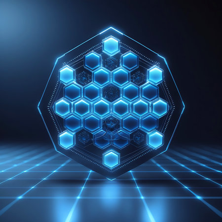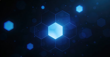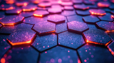 A close-up of a glowing hexagonal pattern symbolizing advanced technology and innovation.