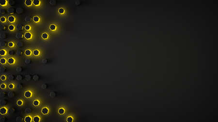 Glowing yellow haxagons on edge and free space. Abstract 3D render illustration