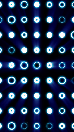 Blue illuminated circles in a grid pattern glowing over a dark surface, creating a futuristic LED look.
