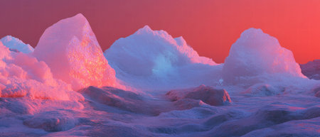 Breathtaking pink and purple sunset illuminating snow-capped mountain peaks, creating a dramatic winter landscape. ideal for wall art, posters, and nature-themed designs. the serene scene underscores the beauty and tranquility of the mountains. Generative AI