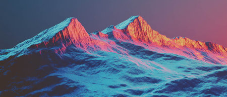 Snowy mountain peaks illuminated at twilight with vivid colors and soft lighting
