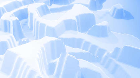 3D render of abstract panorama with rocky mountains. Terrain wallpaper.