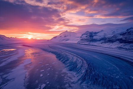 Captivating view of the glacier and mountains in sunset