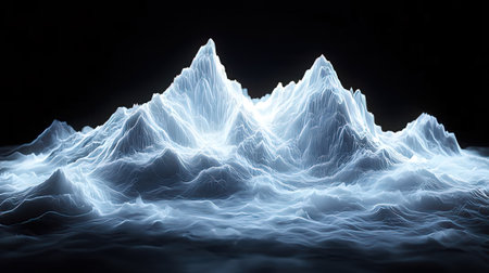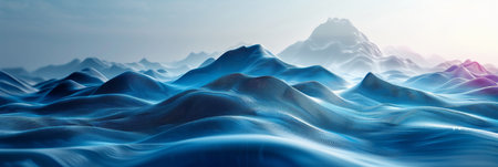A stunning abstract representation of a mountain landscape showcasing vibrant blue and purple tones with sharp peaks and intricate textures, ideal for design use.