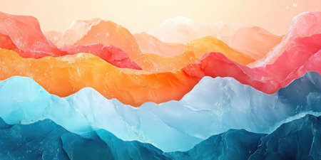 Captivating abstract landscape featuring colorful mountains and a reflective water surface, perfect for artistic projects and creative designs.