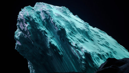 Stunning ice cave with glowing blue light. Abstract nature landscape with glacier formations and unique illumination.