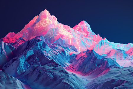Abstract vibrant land illuminated with pink and blue gradients