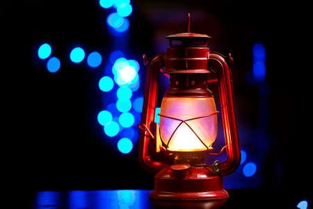 Oil Lamp Lighting up the Darkness or Burning kerosene lamp background, concept lighting