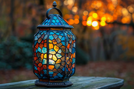 Colored glowing glass stained lantern