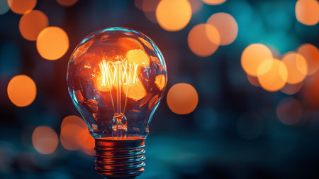 A stunning close-up of a glowing light bulb with a beautiful bokeh background, creating an enchanting atmosphere. Ideal for design and decor projects.